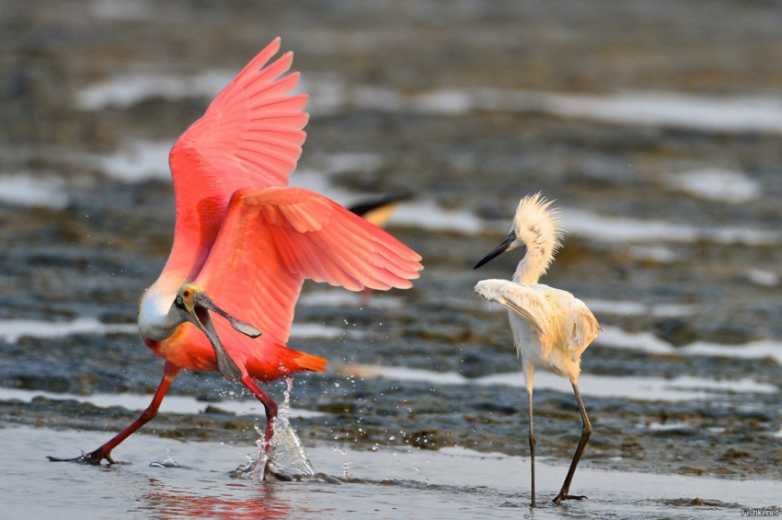 И, как и прочие столовые приборы, колпицы терпеть не могут одиночества. Они постоянно собираются в компашки разных масштабов: от узкого круга друзей до армии пернатых любителей движа на болотах. Иногда, когда нет сородичей, колпицы примыкают к другим болотным птицам. Семья же, как-никак.