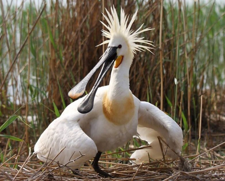 Дарвину вот вообще хватило палитры форм у островных ткачиков, чтобы проникнуться идеей эволюции и начать продумывать монументальный труд о происхождении видов. Плоские, узкие, широкие, длинные и короткие, кривые — все морды, какие вы только можете представить, наверняка уже примерил какой-нибудь птах. Колпицы не стали отставать от этого тренда и забацали из клюва лопатку для салатов!