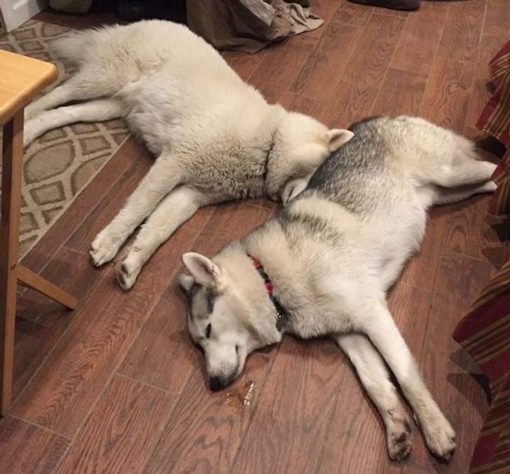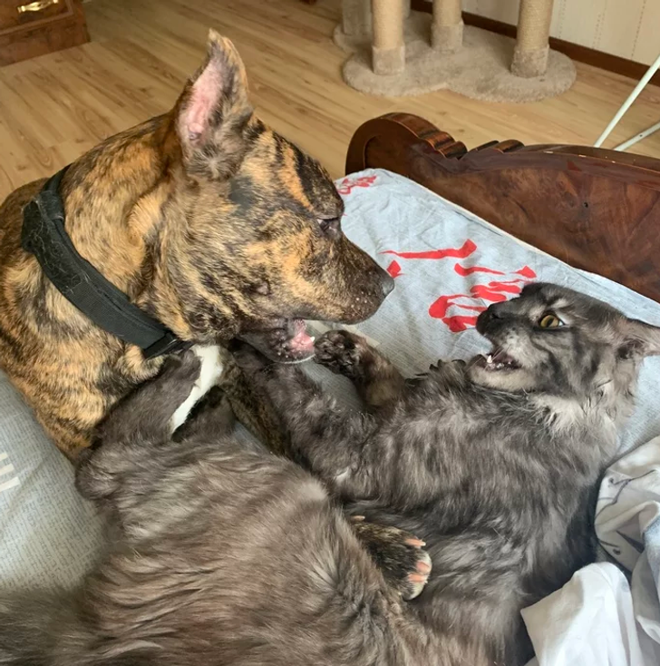 18. «Если вы присмотритесь, то увидите, что голова моего кота торчит из-под собаки. Кот не пострадал, но был очень зол»