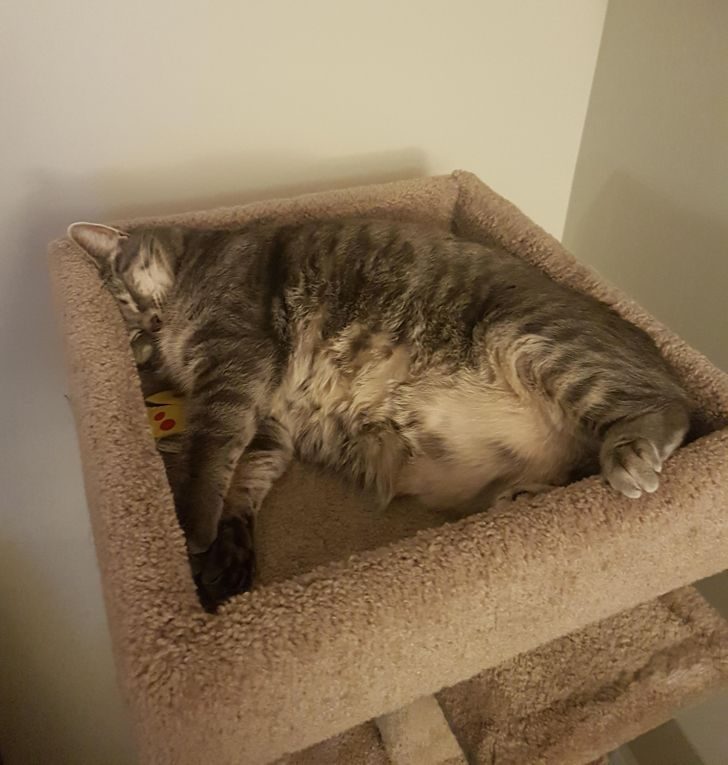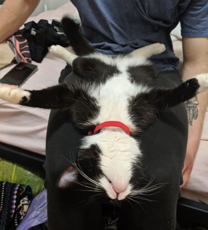 3. «Когда кот засыпает так, это означает, что он полностью счастлив и чувствует себя на 100 % защищенным. Рад, что я хоть что-то делаю правильно»