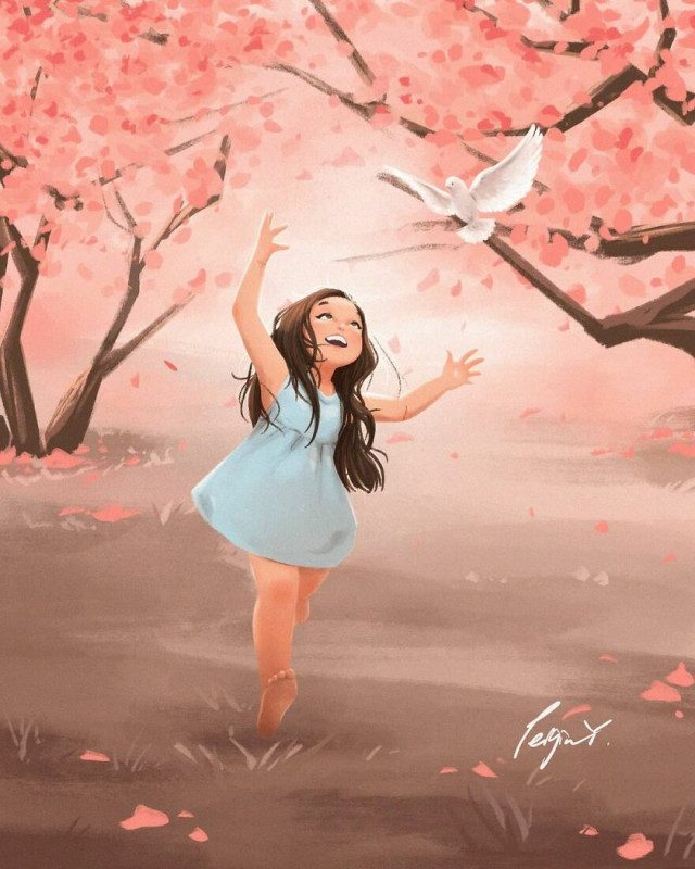 Немецкая художница-самоучка Peijin из Мюнхена создаёт серию иллюстраций, в которых изображает совместное времяпрепровождение людей и животных.