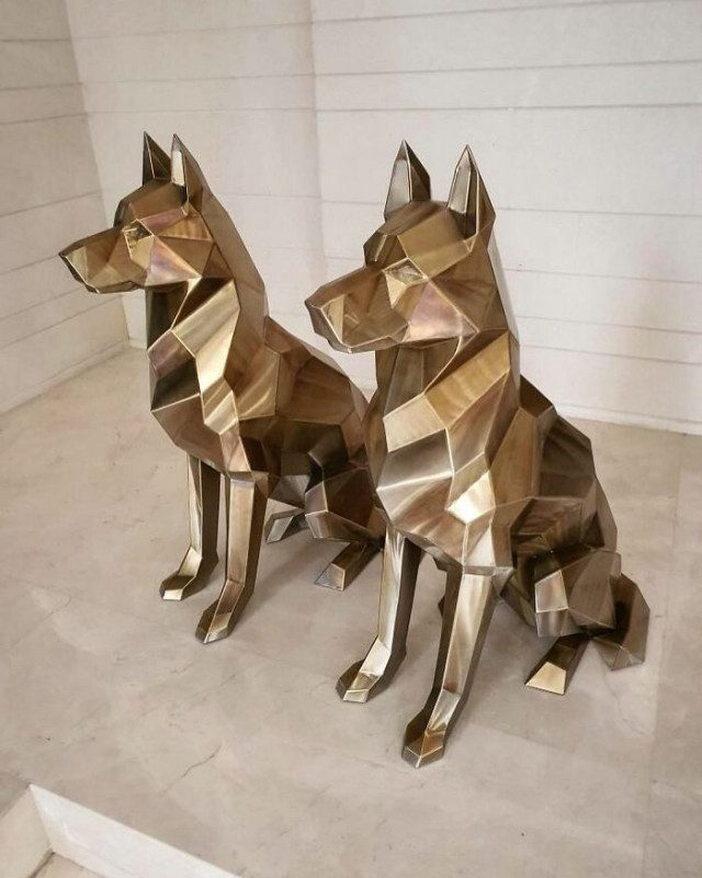 С помощью пресса он вырезает формы из листового металла, а затем собирает все детали в одно целое. Завершающий этап пайки позволяет его творениям принять окончательную форму. Все скульптуры Андрея Казанцева вдохновлены одной и той же главной тематикой — животные, будь то домашние или дикие.