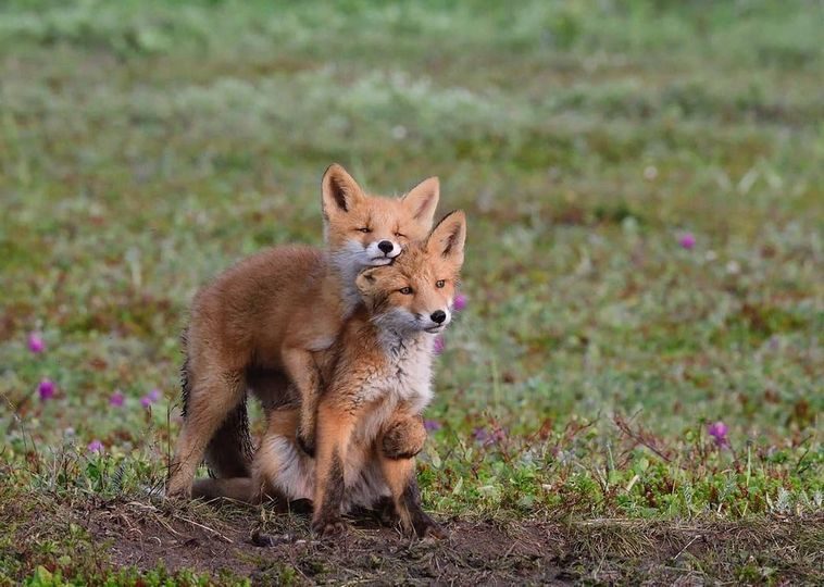 Молодые лисята беззаботно играют в Кроноцком заповеднике