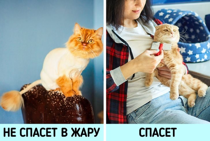 Причин для бритья животных немного, и связаны они с медицинскими показаниями. Например, любимцу предстоит операция или он страдает от кожного заболевания. Чтобы помочь пушистикам пережить пекло, подготовьте для них темное прохладное укрытие и не забывайте о проветривании. А длинношерстных кошек расчесывайте каждый день, чтобы удалить лишние волоски.
