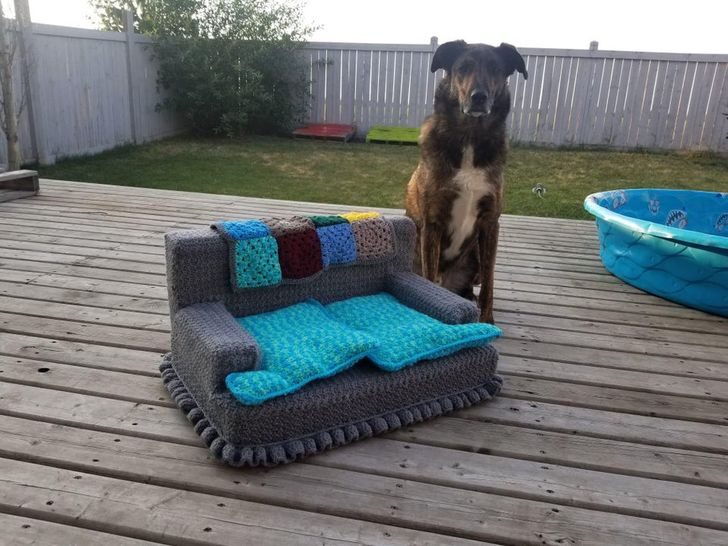 «Моя сестра сделала диван для моей кошки. А собака на фото — для понимания масштаба»