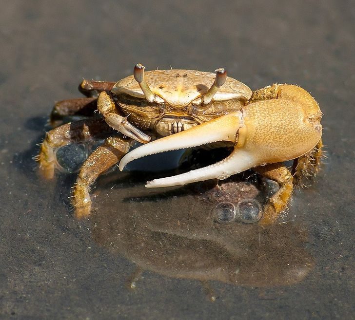 Манящий краб использует большую клешню, чтобы отпугивать соперников, защищать свою норку и привлекать самок: им нравятся большие размеры. Маленькая клешня служит для того, чтобы отщипывать и класть в рот небольшие кусочки еды. Движения клешни при этом напоминают игру на скрипке (поэтому второе название этого ракообразного — краб-скрипач).