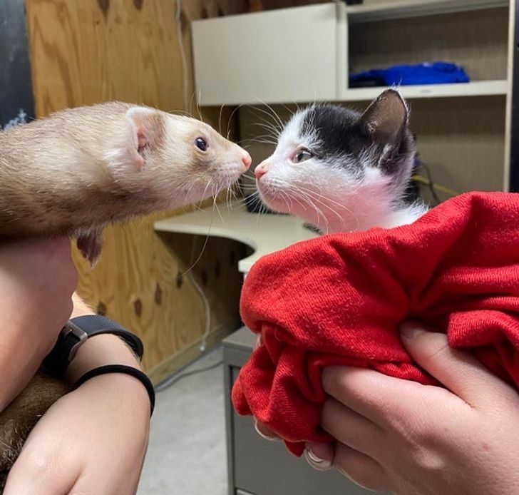«Работаю в приюте для животных, который обычно принимает только собак и кошек. Сегодня кто-то принес нам хорька. Он был напуган и одинок, и вот посмотрите»