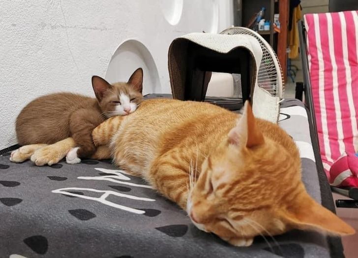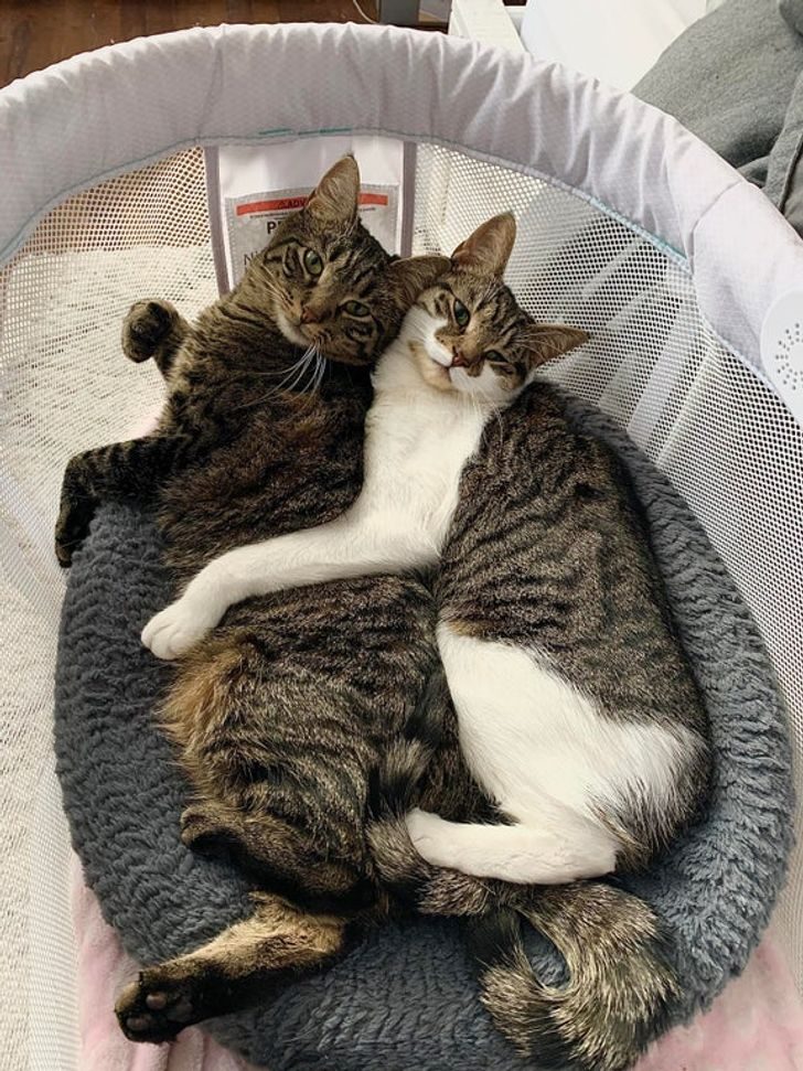 «Когда я принесла малышку домой, эти двое не хотели знать друг друга. Однажды я ушла ночью на работу, а вернувшись, обнаружила, что они мурлыкают вместе на диване»