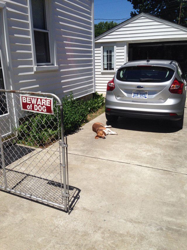 Чтобы отогнать нежелательных незнакомцев, многие вешают табличку с надписью «Осторожно, злая собака!», чтобы дать людям понять, что в их интересах проходить мимо.