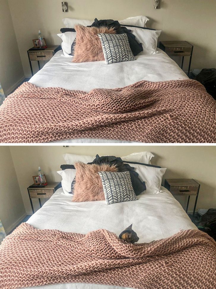 19. «Не могла найти свою кошку. Искала и под кроватью, и под диваном, и под столом — везде, где она в теории могла спрятаться. А она все это время была здесь»