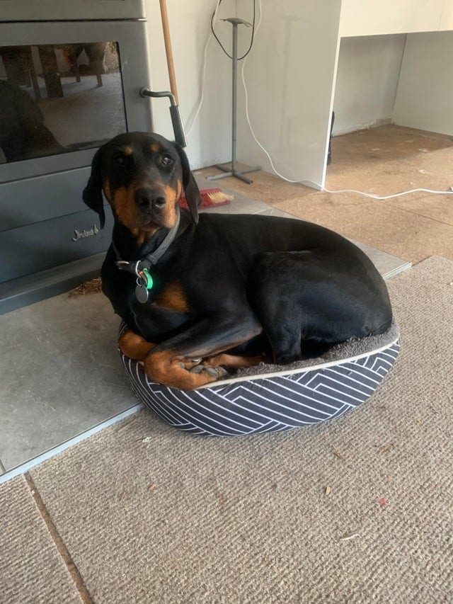 Это не его лежанка, это он у кошки отжал. Нет, не наоборот, сам залез.