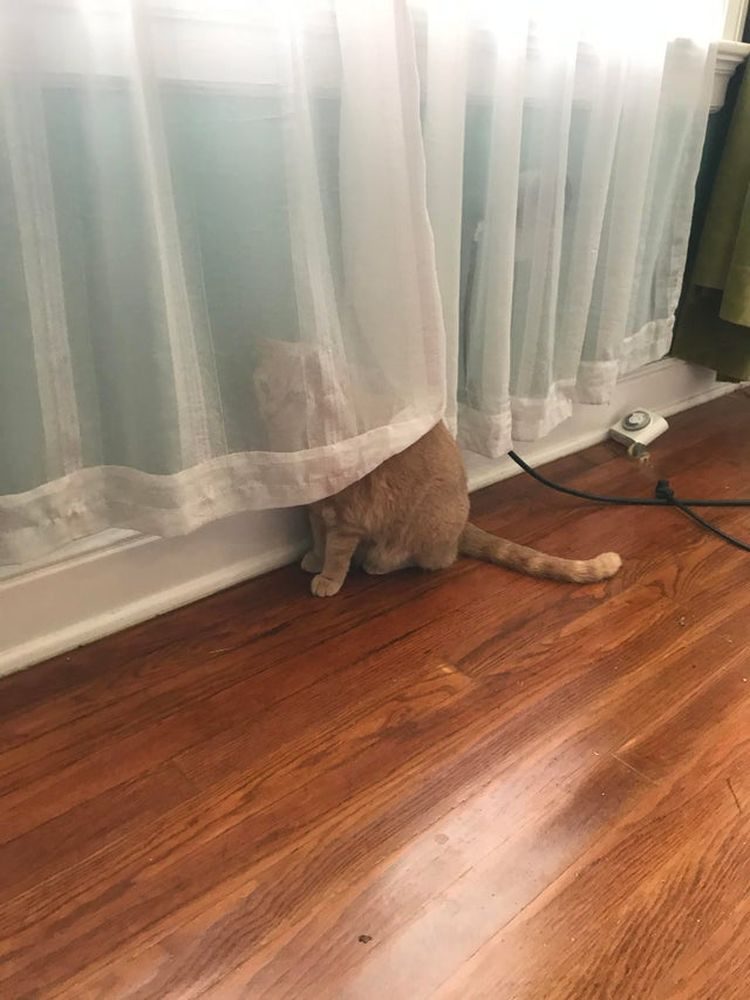 Мы любим своих питомцев несмотря на что, и когда они думают, что отлично спрятались, а сами сидят у всех на виду, прикрывшись занавеской, мы умиляемся их наивности ещё больше.