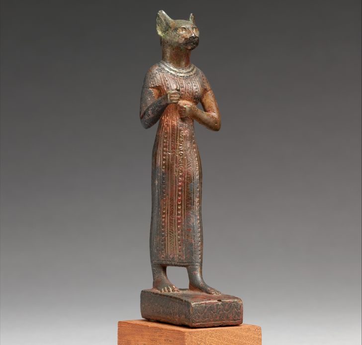 Затем пушистые питомцы попали в Египет, где их встретили со всеми почестями: в честь кошек там придумали и отдельную богиню — Бастет. Согласно поверьям египтян, у Бастет было женское тело и лицо кошки.