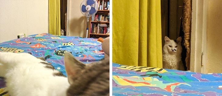 «Так наши коты ждут возможности напасть на что-то, живущее под холодильником»