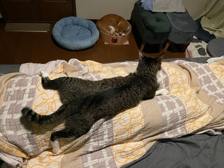 Кто-то спит в положенном месте, а кто-то решил без стеснения разлечься прямо на хозяине