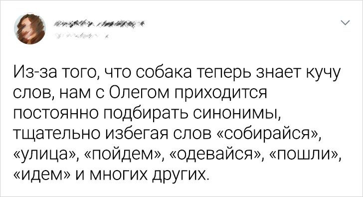 Мама строго запрещала нашему псу находиться на ковре. Это было для него хуже танталовых мук, потому что мы проводили много времени в комнате с ковролином. На его несчастную морду было больно смотреть. Спустя некоторое время он начал класть одну лапу на ковер. Это было очень неудобно, так как все остальное туловище оставалось на твердой деревянной ступеньке. Потом на ковре оказались две лапы. Было любопытно, как далеко он зайдет. И вскоре на краю ковра лежал весь пес, лишь одна лапа оставалась на ступеньке. Иногда, когда мамы не было, мы с отцом забирали его к себе на диван, чтобы только не видеть его жалостливую морду. И он вдруг осознал, что на диване ковра-то нет. И вот однажды мы услышали стук когтей по паркету, и черная собачья «торпеда» пролетела в прыжке длиной около 3 метров через весь ковер и приземлилась точно на диван. Так наш сообразительный пес выбил себе право лежать на ковре.