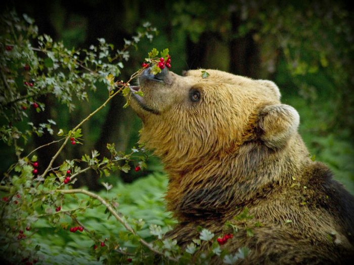 Рацион медведя в большинстве своем составляет пища растительного происхождения в виде стеблей и корней растений, всевозможных ягод, орехов