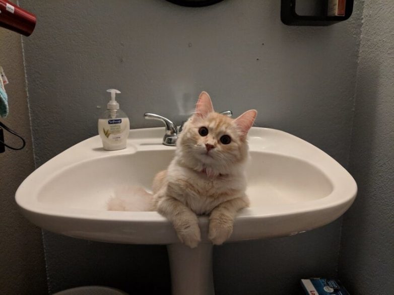Наша кошка делает так, чтобы все посетители ванной почувствовали себя неловко