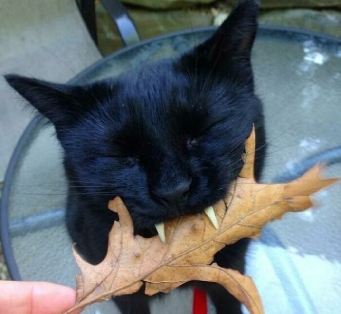 Зубы этого кота похожи на пластиковые клыки вампиров из нашего детства