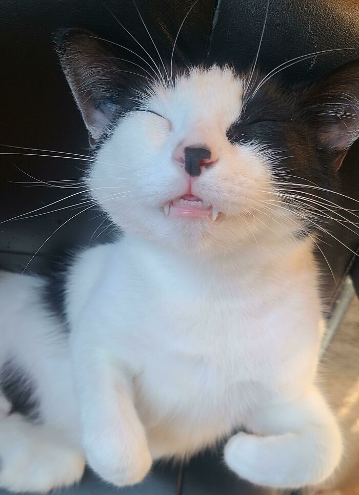 «С таким выражением мордочки чихает моя кошка, одновременно показывая свои зубы»