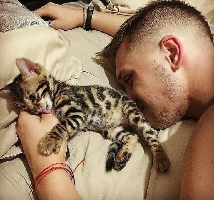 9. «Мой папа, который ездит на Harley-Davidson и ростом под два метра, дремлет с моим полуторакилограммовым щенком. Вот она настоящая любовь, друзья»