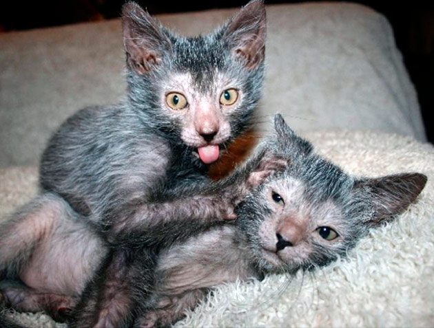 Ожидалось, что котятки родятся лысыми и с крепким туловищем, но на их теле местами виднелась серая шёрстка. Кстати, хозяева подумали, что малыши долго не проживут, а те не только выжили, но ещё и удивили всех своим отменным здоровьем.
