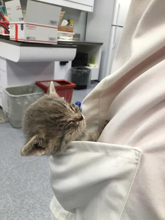 Этот малыш заснул в ногах ветеринара, пока доктор разговаривал с его хозяином