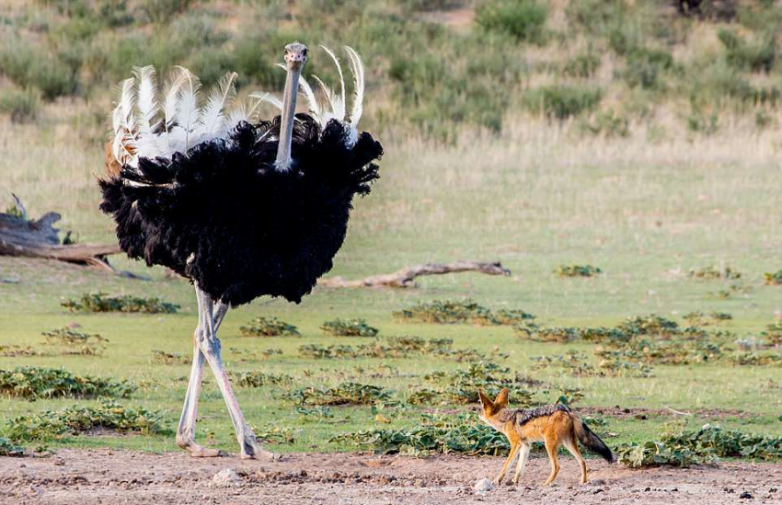 Но и страус не похож на беззащитную овечку. Его огромные, больше мозга, глаза постоянно мониторят пустоши на наличие подозрительной активности. Стада копытных знают об остром зрении птицы и стараются тусоваться поближе к ним. А пернатые и не против. Если они проморгают атаку, травоядные послужат отличным живым щитом. Большинство жвачных не способно за пару секунд разогнаться до 70 километров в час. А страус может. Значит, мясоед скорее выберет мясо, а не курицу.