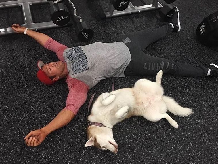 Знаменитый бодибилдер Майк Охёрн всегда берет с собой в тренажерный зал любимую собаку