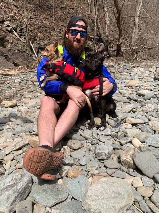 Если нацепить на четвероногих спасательные жилетики, их можно брать даже на рафтинг