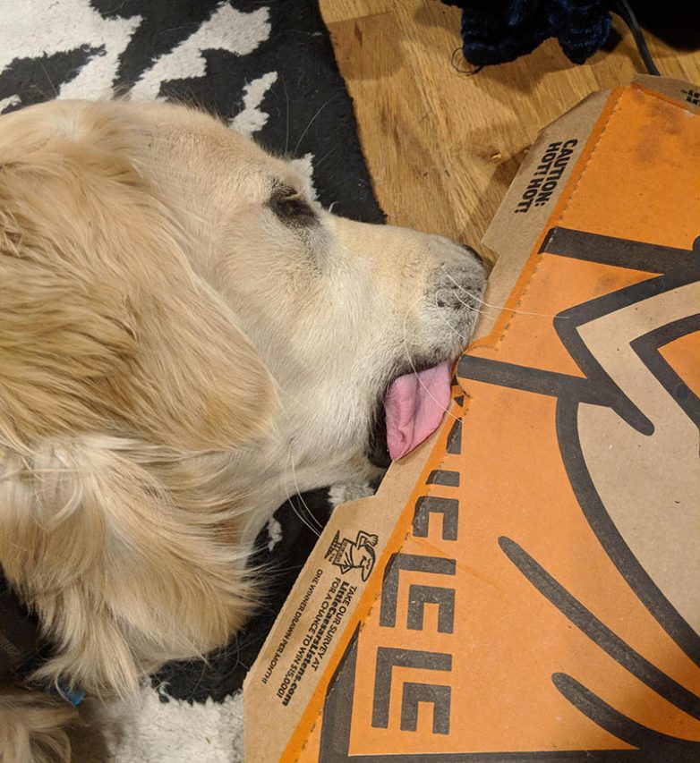 Он не смог нарушить запрет и позариться на пиццу. Но и уйти было выше его сил! А ещё у него очень длинный язык.