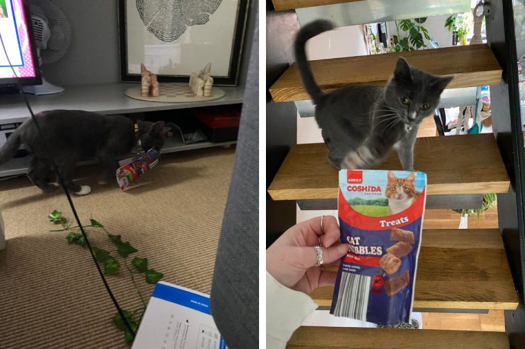 Это корм из соседского дома, дверь была приоткрыта, чем серый проказник и воспользовался