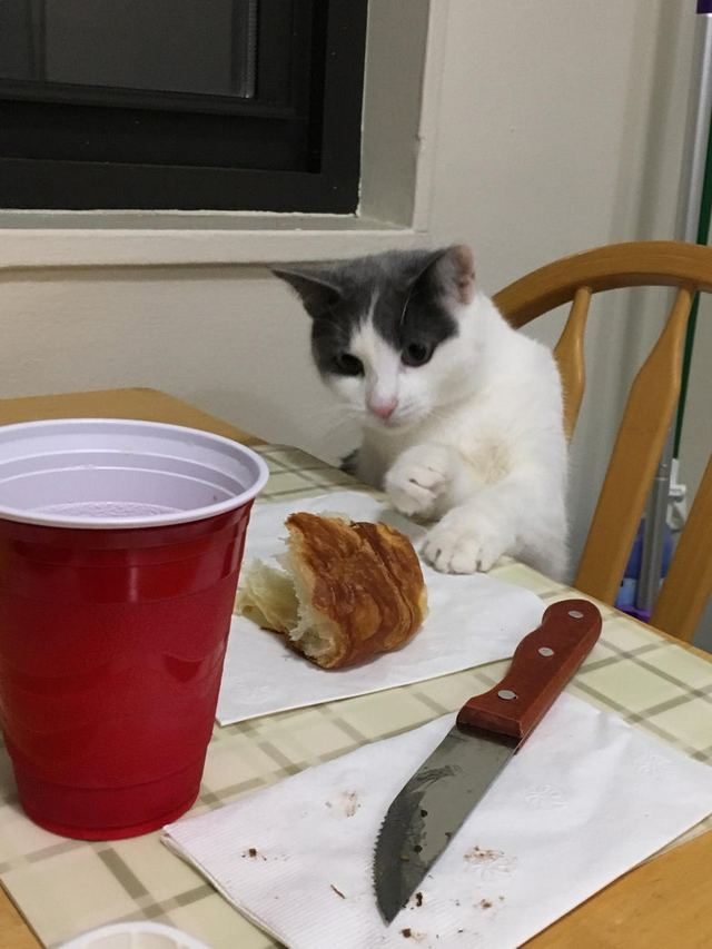 “Стоило отлучится на пару минут, кот уже собирается умыкнуть мой круассан”