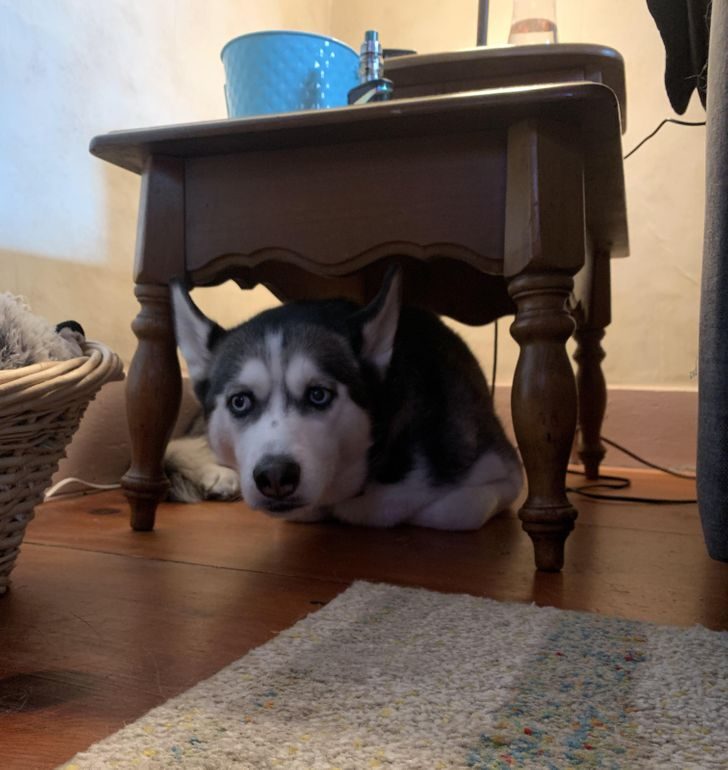 20. «Моя собака испугалась упаковочной пленки с пупырышками. Прячется за диваном уже 3 часа»