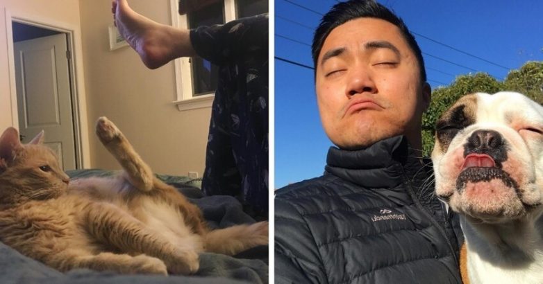 Говорят, что домашние питомцы всегда похожи на хозяев — и чем больше смотришь на совместные фотографии людей и животных, тем сильнее в этом убеждаешься! Видимо, владельцы котов, собак и других питомцев проводят со своими пушистыми любимцами так много времени, что постепенно перенимают их мимику и повадки. Да и звери не отстают от людей в любви к копированию! Разберётесь, кто здесь вообще за кем повторяет? Давайте проверим!