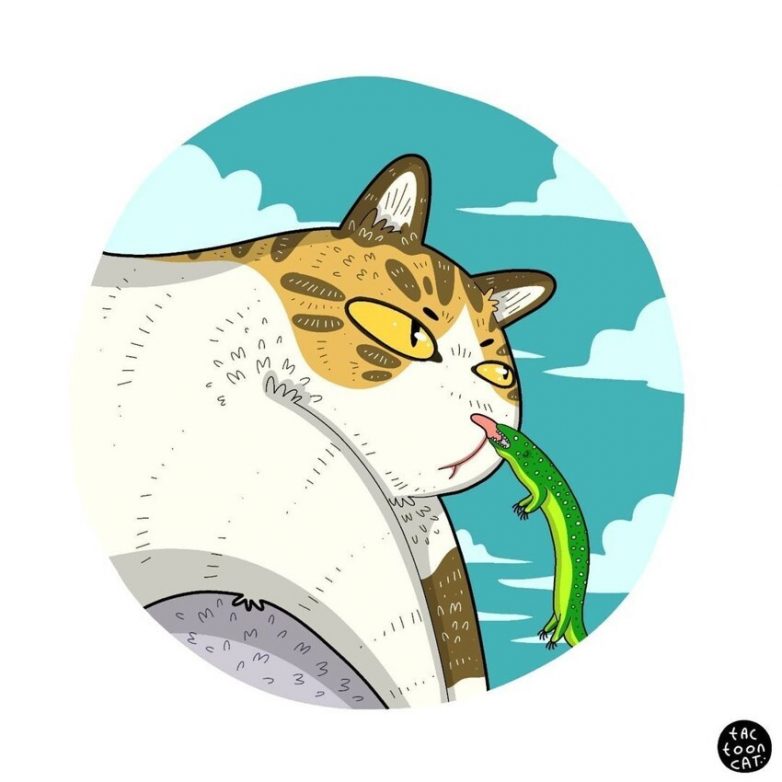 Художник превращает забавные фото котов в смешные рисунки