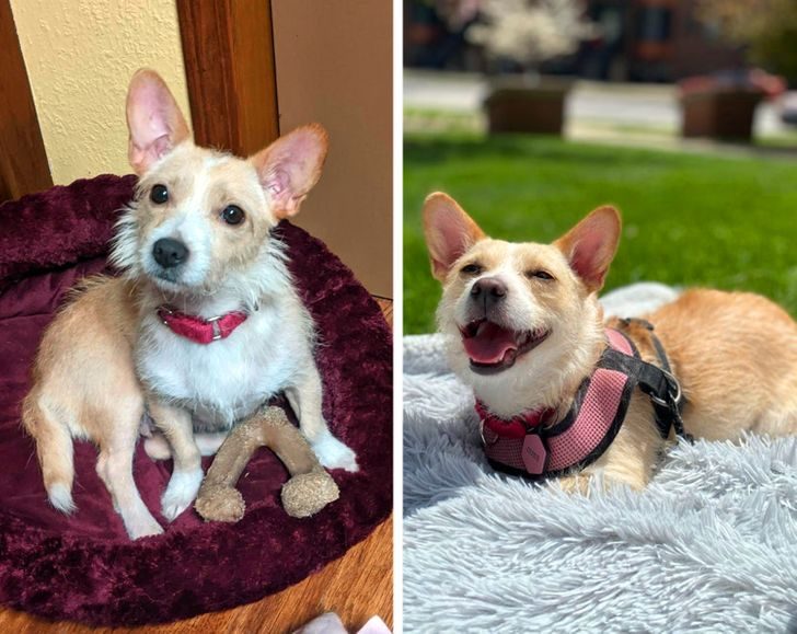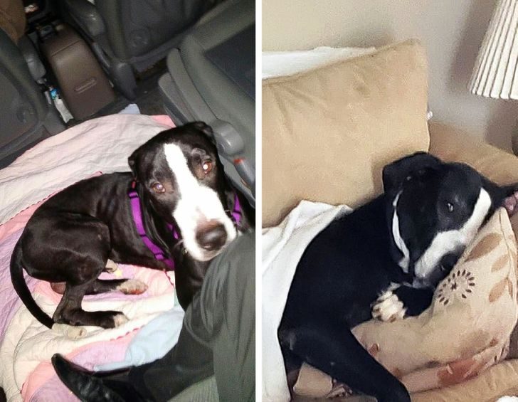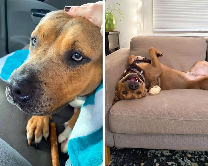 «Моя собака была беременна, когда жила в приюте. На фото она до и после удочерения. Счастливая девушка»