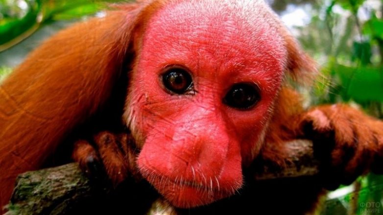 Эта странная обезьяна живет в тропических лесах Амазонки. У нее рыжая голова, которая скорее напоминает о марвеловском злодее Красном Черепе.