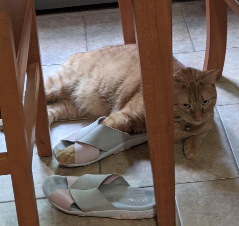 “Что такого притягательного в моих шлепанцах, что кот к ним так прилип?”