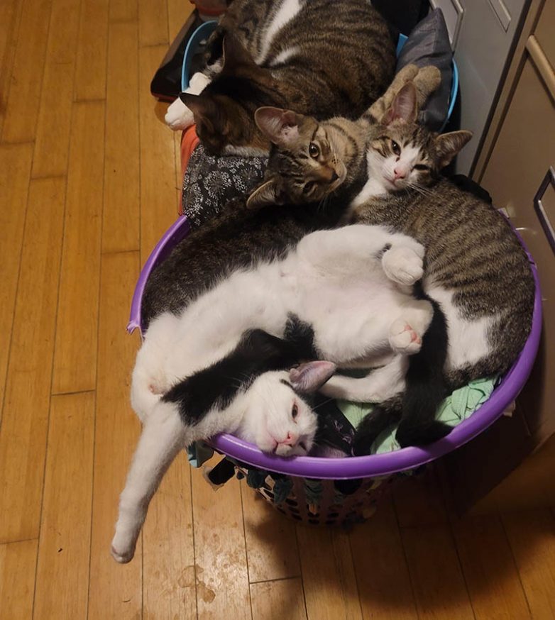 Одна корзина для белья собрала всех котов сразу