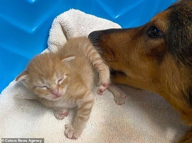 Это не первый пример, когда собака ухаживает за котятами. В прошлом году спасатели поделились историей овчарки по кличке Джорджия (Georgia), которую спасли в США. Ее щенки родились преждевременно, и к сожалению, она их потеряла. Когда сотрудники попробовали познакомить ее с котятами, которые нуждались в маме, Джорджия взялась ухаживать за ними: