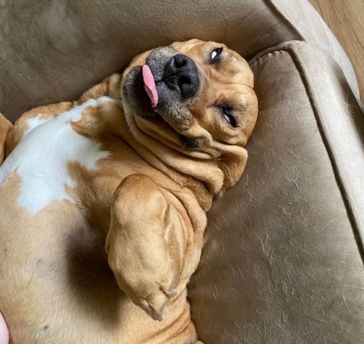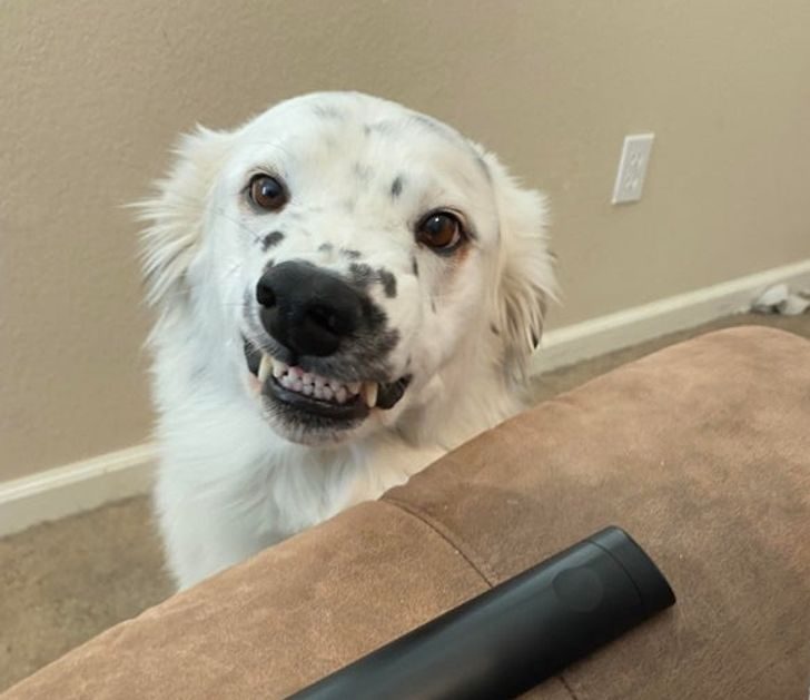 «Он думает, что выражение его морды убедит меня позволить ему забраться на диван»