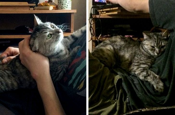 «Потом оказалось, что не „появился“, а „появилась“. Но там сначала даже ветеринар не был уверен. Так что имя оставили. Ну и, собственно, уже накопилось фоток с „равнодушным к кошкам“ мужчиной и кошкой, которой вообще без разницы, что этот мужчина там себе наравнодушничал. Вот планирую сделать коллаж или календарь и подарить».
