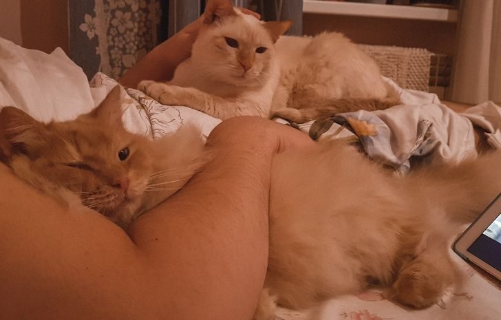 «Моя кошка — самое ласковое существо из всех, кого я встречала. Хочет быть рядом примерно всегда. Только сядешь — она на колени. Только ляжешь — и она уляжется сверху. Это любовь, однозначно»