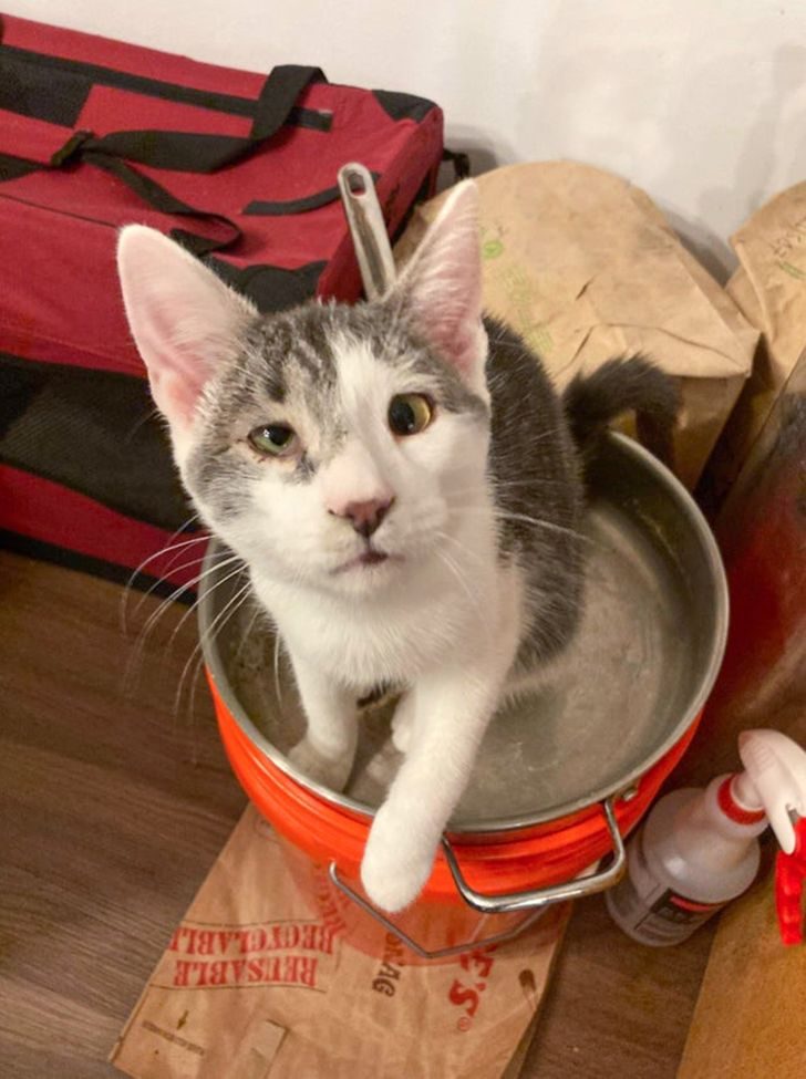«Мой слепой кот Тито. Я просто поражаюсь, как ловко он взбирается на этот свой домик»