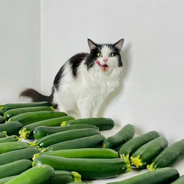 Познакомьтесь с Маури, котом, который любит огурцы.