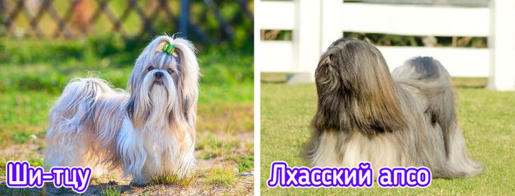 Ши-тцу и лхасский апсо — это 2 небольшие собаки с длинной шерстью и закрученным на спину хвостом, именно из-за этих характеристик их и путают. Но, несмотря на примерно одинаковую длину шерсти, она все же разная по структуре: у ши-тцу шерстинки мягкие, а у апсо — жесткие.Также отличить их можно по цвету глаз: у ши-тцу они всегда темно-коричневые, а у лхасского апсо — любого темного оттенка. Породу ши-тцу также выделяет форма головы, которая может напоминать голову льва или совы.