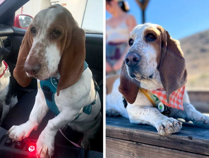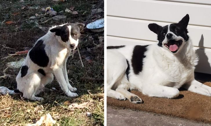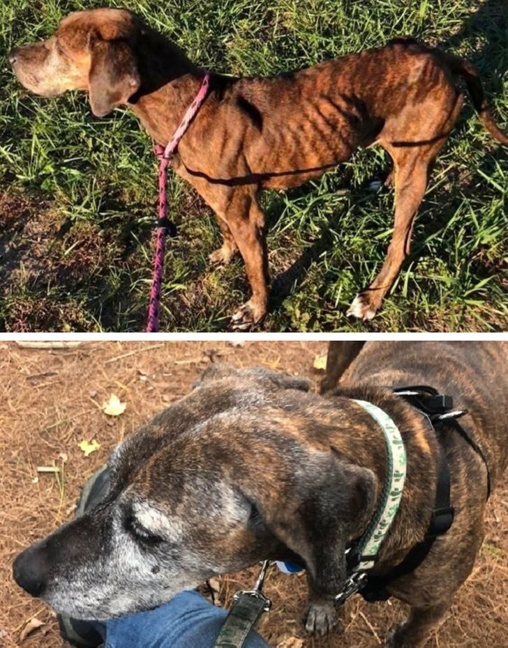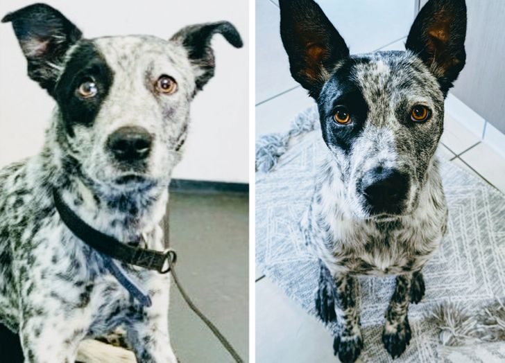 «Это Рипли в тот день, когда мы забрали ее из приюта, и сейчас, когда она с нами 3 года»