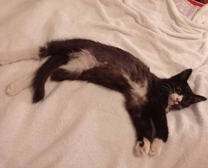 «Оказалось, что у него не ходят левая передняя и правая задняя лапы. Лечили месяц ежедневно: уколы, массажи, мази, промывания. К его чести — все процедуры переживал стоически. Подрастает очень благодарный и активный кот».