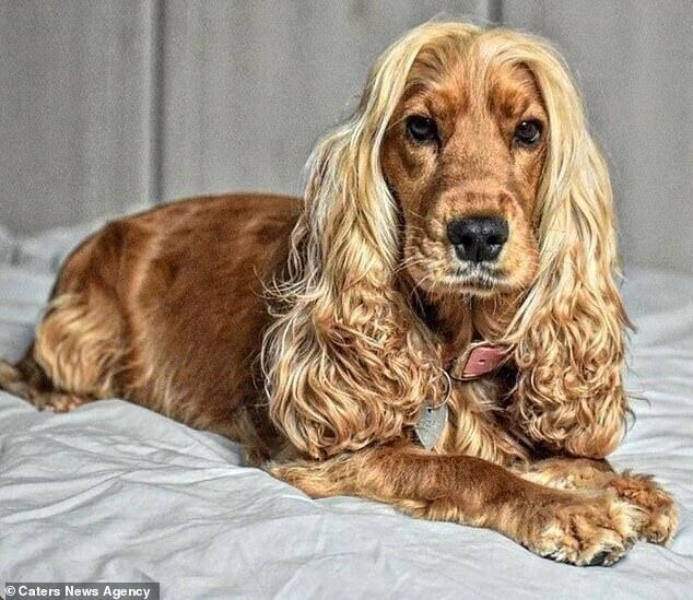 Трехлетний кокер-спаниель Лола — обладательница роскошной белокурой шевелюры.